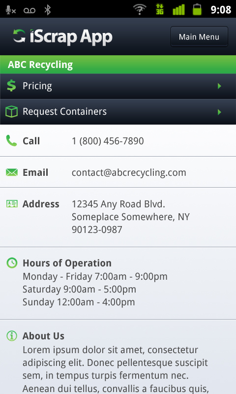 Scrap App™ is the only fully manageable smartphone application and web marketing toolset focused specifically on the business to business recycling industry. Whether you’re an everyday user, or an established recycling business—this FREE app will immediately become an indispensable tool that will take your business to the next level. Quickly and easily set up your own profile and business details.